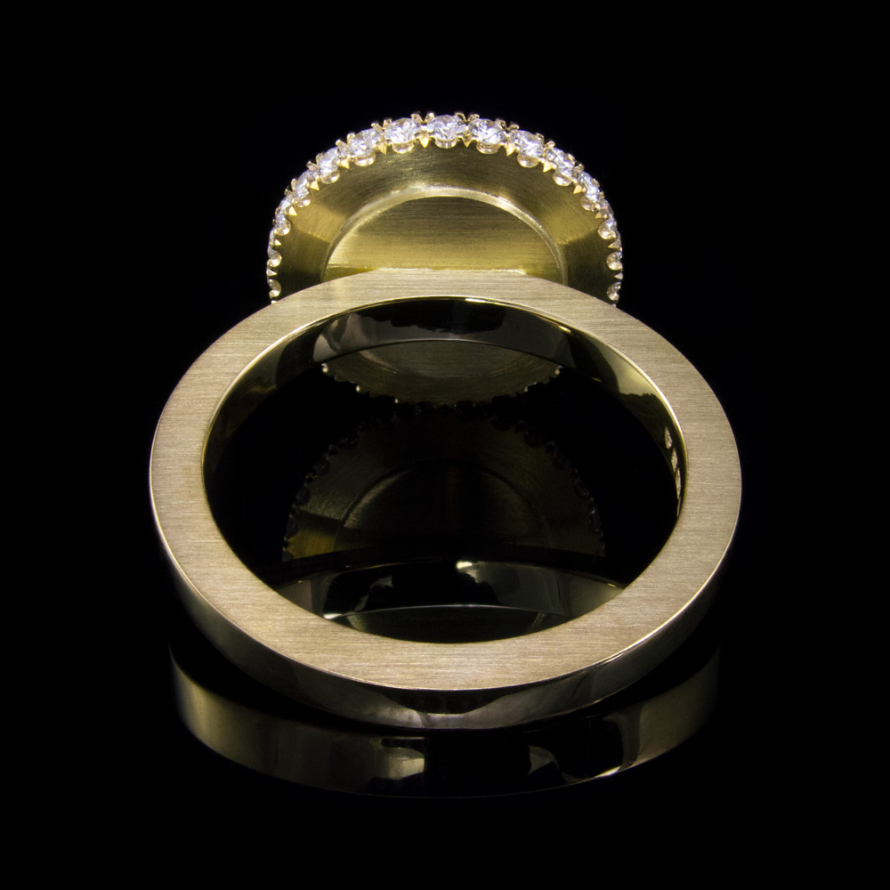 As this design has very clean lines the back is as important as the front. There is a very subtle step where the back of the setting has been soldered in, lifting the head of the ring off the finger and giving the option of wearing another ring next to it.