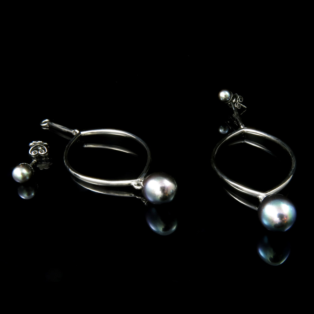 We decided to go for this design, as it gives you two styles in one. Simple silver and freshwater pearl studs for everyday wear and detachable silver shapes for the extra impact on special occassions. All parts were black rhodium plated.